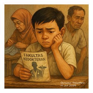 Fiksi Mini (1)Oleh Gunawan Trihantoro HATIPENA.COM – Di meja reyot itu, kutatap brosur fakultas kedokteran yang warnanya sudah pudar.Tanganku gemetar, membayangkan biaya yang tak terhitung….