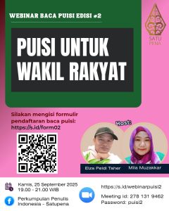 BERSAMADUTA BACA INDONESIAPERPUSTAKAAN NASIONAL RISIP PUBLISHING Sudah 3700 orang yang bergabung HATIPENA.COM – Kami mengundang para penulis, guru, dosen, pelajar, mahasiswa, dan masyarakat umum untuk…