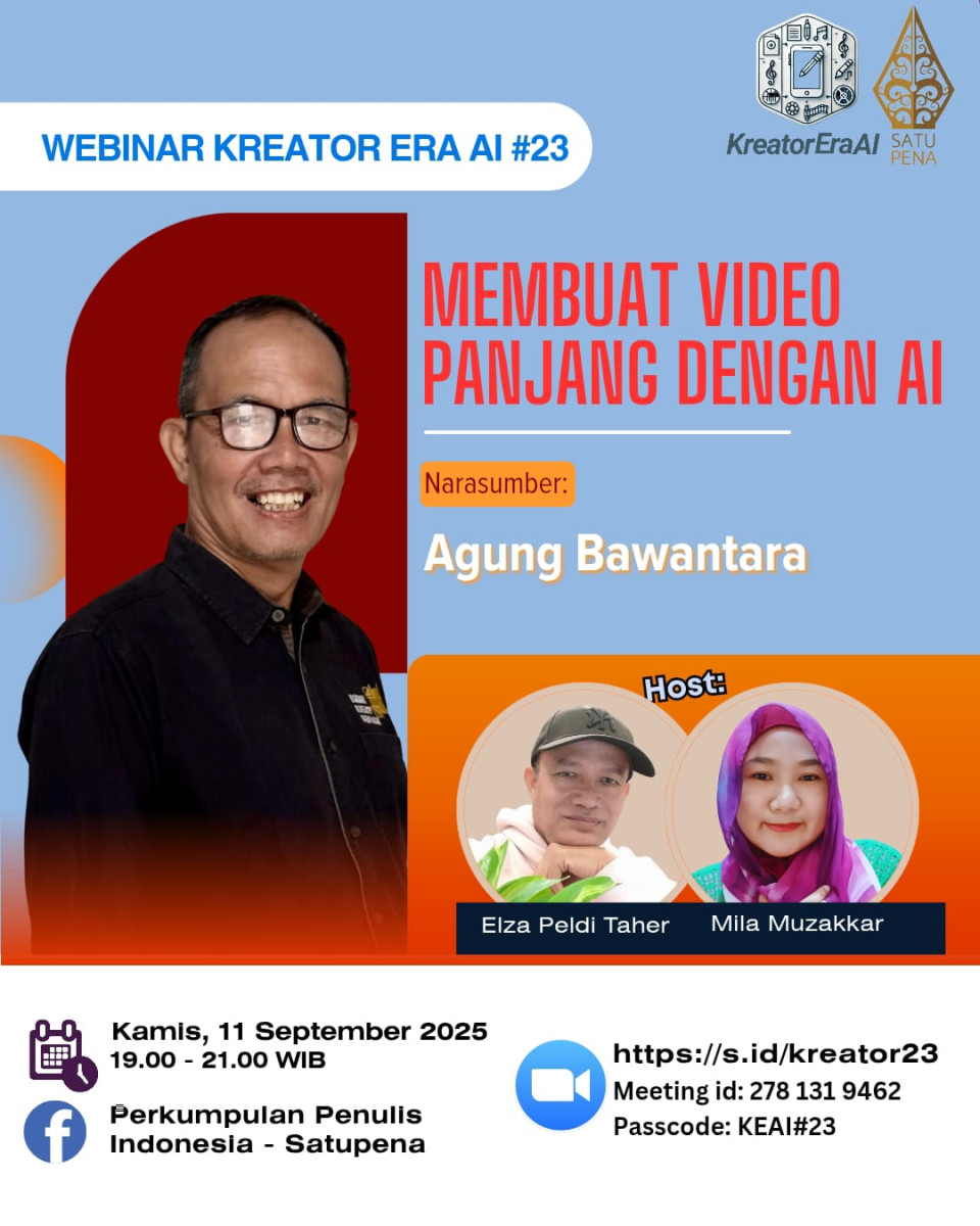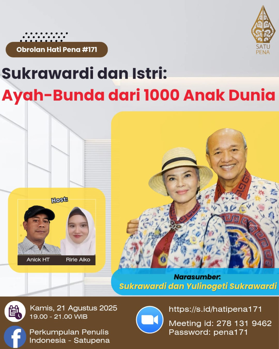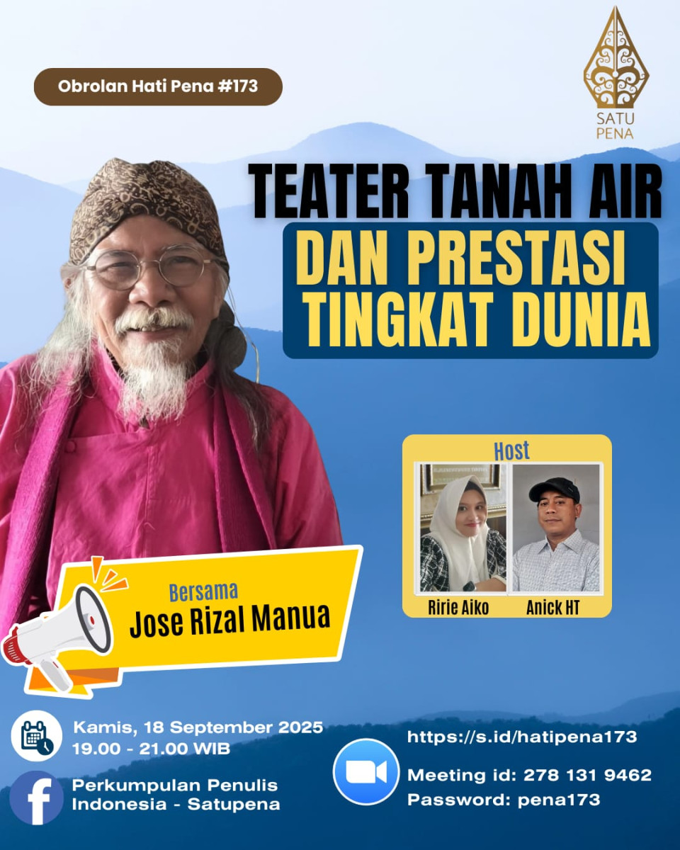 UNDANGAN WEBINAR HATIPENA #173 HATIPENA.COM – Jose Rizal Manua, maestro teater anak-anak Indonesia, akan berbagi kisah hidup dan perjalanan seni yang menginspirasi. Dari Teater Adinda…