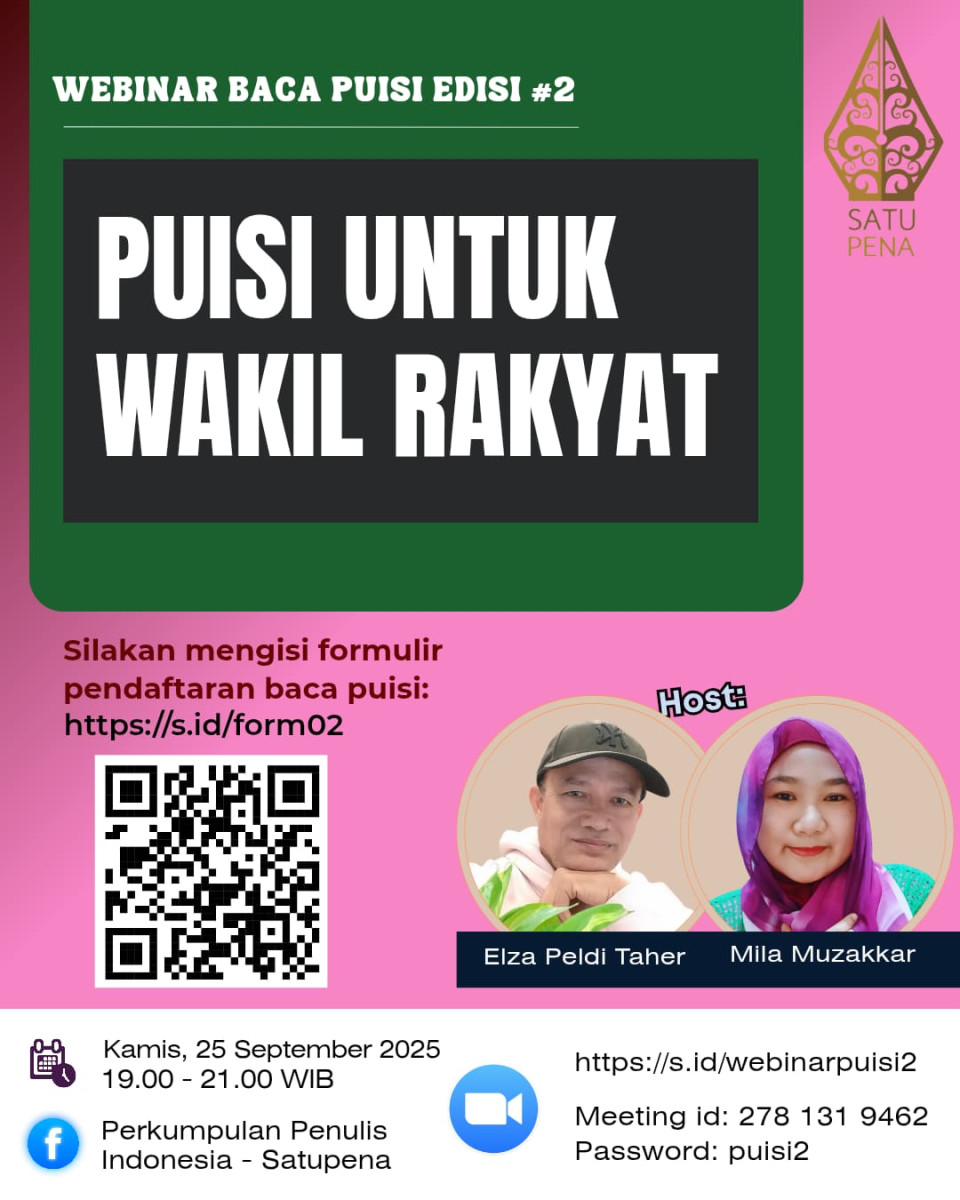 HATIPENA.COM – Satupena menghadirkan Webinar Baca Puisi yang akan berlangsung sekali setiap bulan, menjadi ruang perjumpaan para pencinta kata untuk bersuara dan berbagi makna. Pekan…