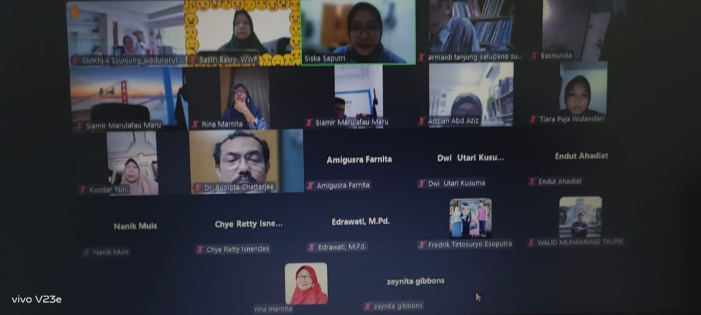 Terima kasih kepada pembicara yang membedah buku ‘Verses from the Soul’ ini. Yakni kepada Aminur Rahman dari Bangladesh, Dr. Sudipta Chatterjee penerjemah sekaligus penyair dari India, Prof. Siamir Marulafau akademisi dan penyair Aceh, Dr. Endut Ahadiat dosen Univ Bung Hatta, Dr. Rina Marnita dosen FIB Unand dan Prof. Chye Retty Isnendes dosen UPI Bandung Indonesia.
